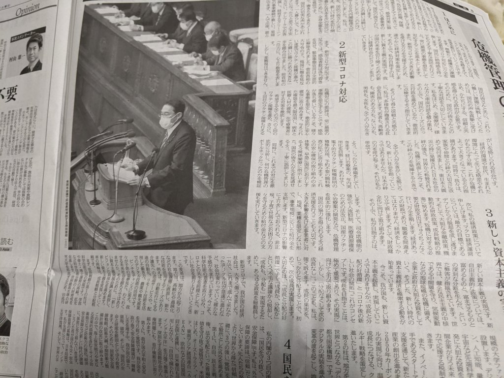 10兆円規模の大学ファンドの話などもあったのが意外でした。外交安全保障については信頼ということが明記されてました。これは、おぼえておいたほうがよいフレーズやもしれませんね。