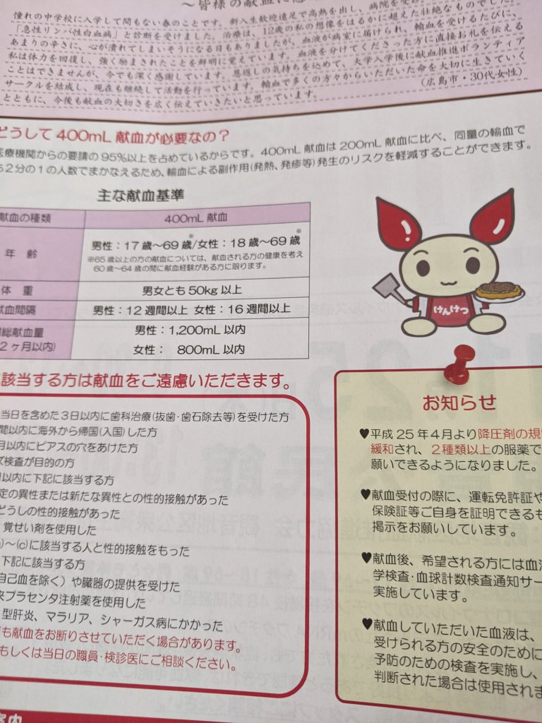 昨日は、公衆衛生推進協議会での献血イベントのお話参加でした。わたし自身献血を共催もしたり、献血自体をあと一回すると、記念すべき10回目の400ミリリットル献血となります。
