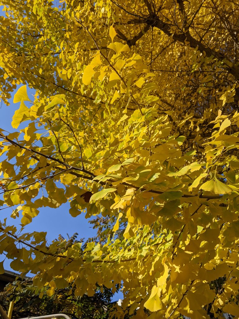 に行ってきました。遠足のときに切った丸い板に紙粘土で色を付けた🐿をこどもが描いてました。お友達との共同のいちょうの木絵なども大作だったように思いました。