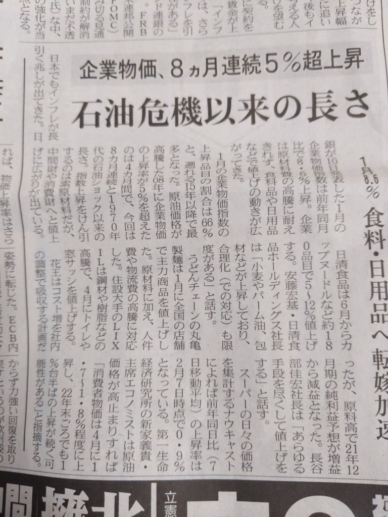 企業物価指数も自分事のようです。消費者物価指数も自分事のようです。んー閉口しちゃう。