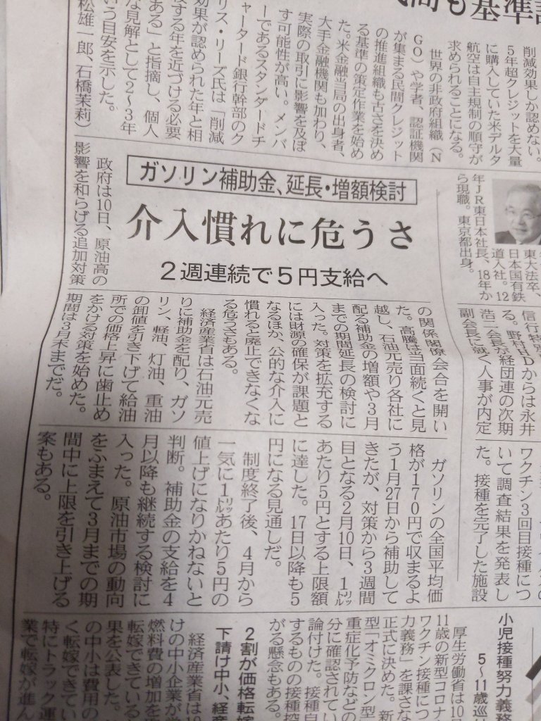 ガソリン補助金てのが石油元売り業者にはあるんですねー知らんかった。3月末までとのこと。