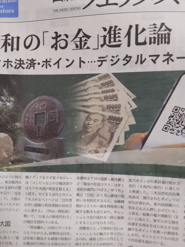 クレカ、ペイペイ、ICOCAは使うことが多いですね。普及前は、有名経済アナリストさんも日本は現金大国なので普及しないと言っていたけれども、やや外れて普及しているように感じますね。