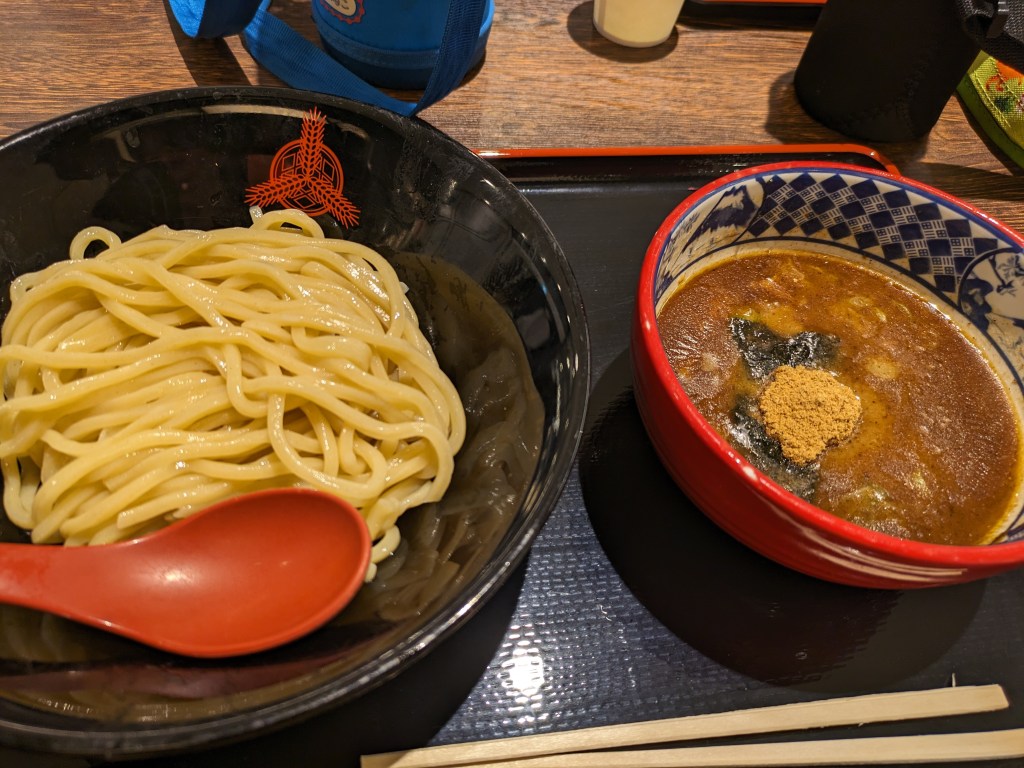 今日はジアウトレット広島店に行きました。1枚目は三つ矢製麺所のつけめん