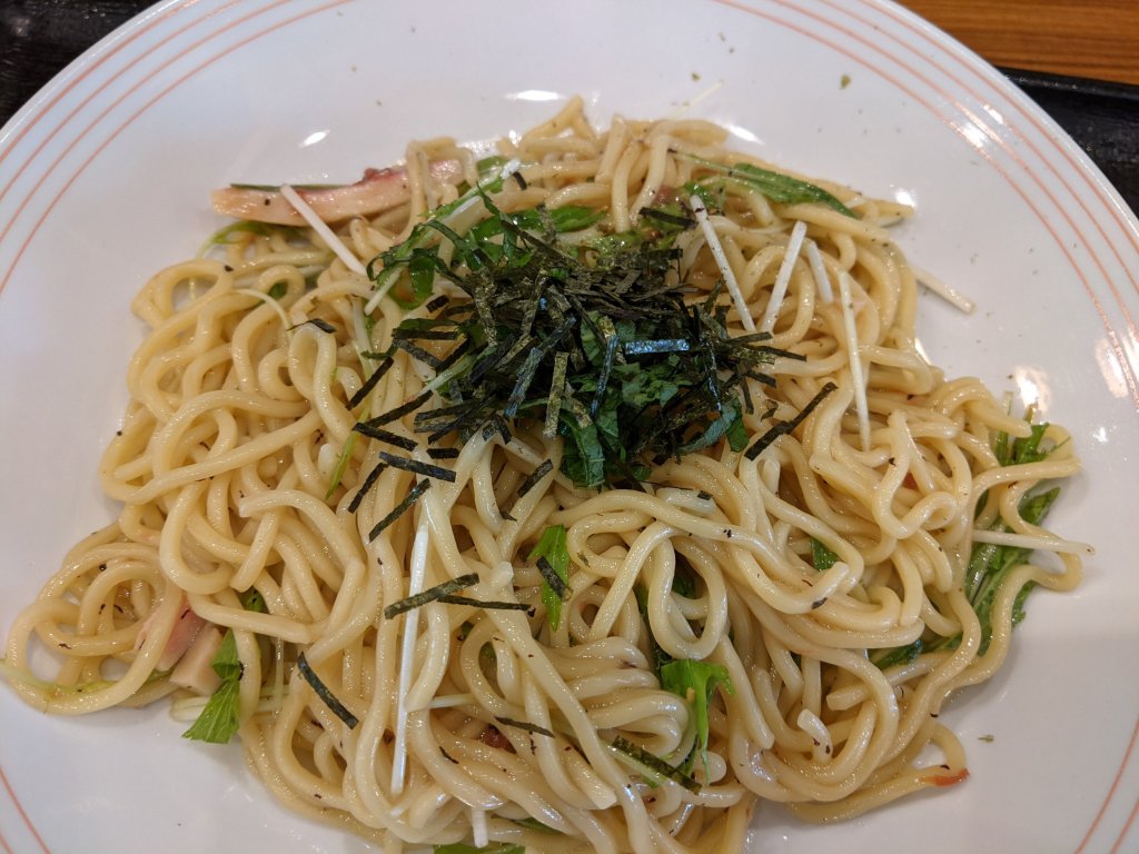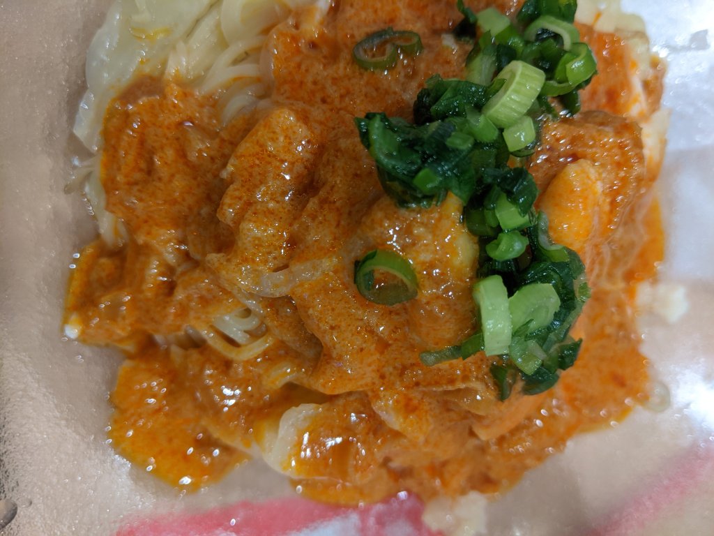 の冷たいまぜ麺梅肉と鶏肉のまぜ麺をたべました。これはオススメです。